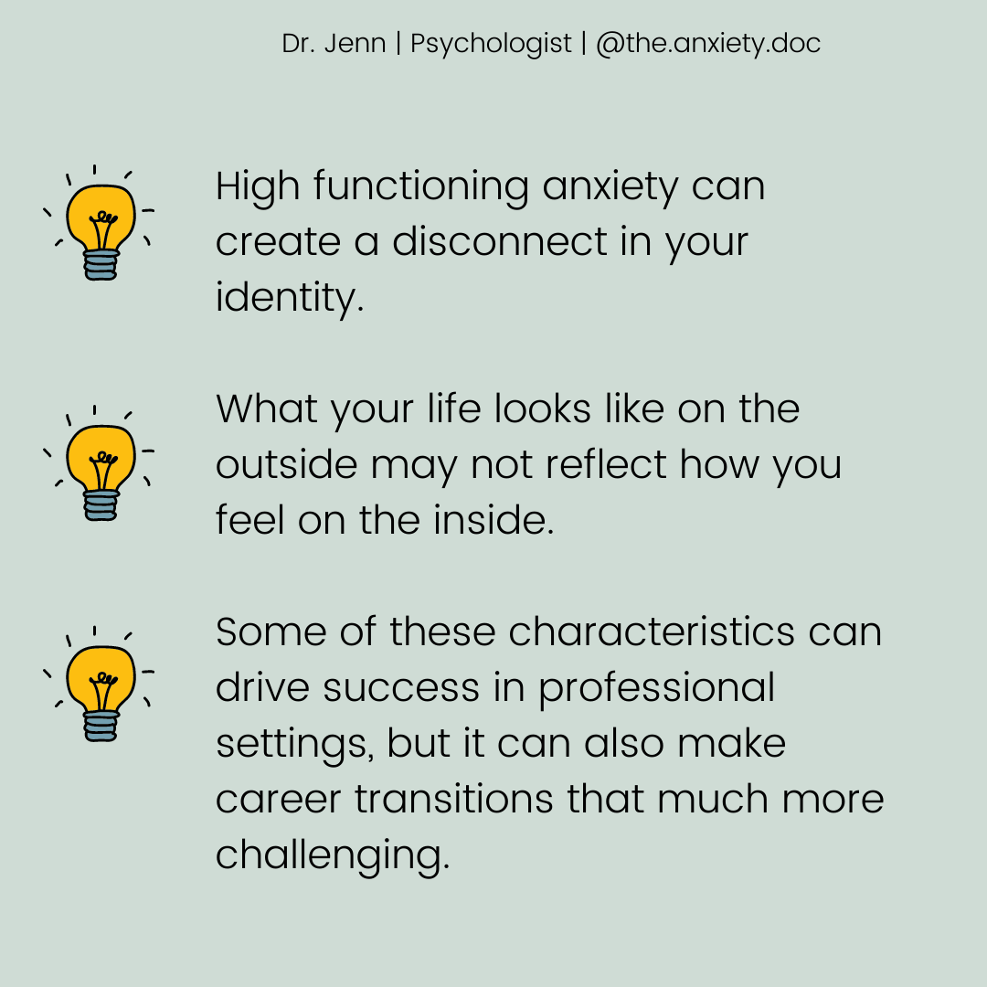 High functioning anxiety (HFA) can create a disconnect in your identity. What your life looks like on the outside may not reflect how you feel on the inside.